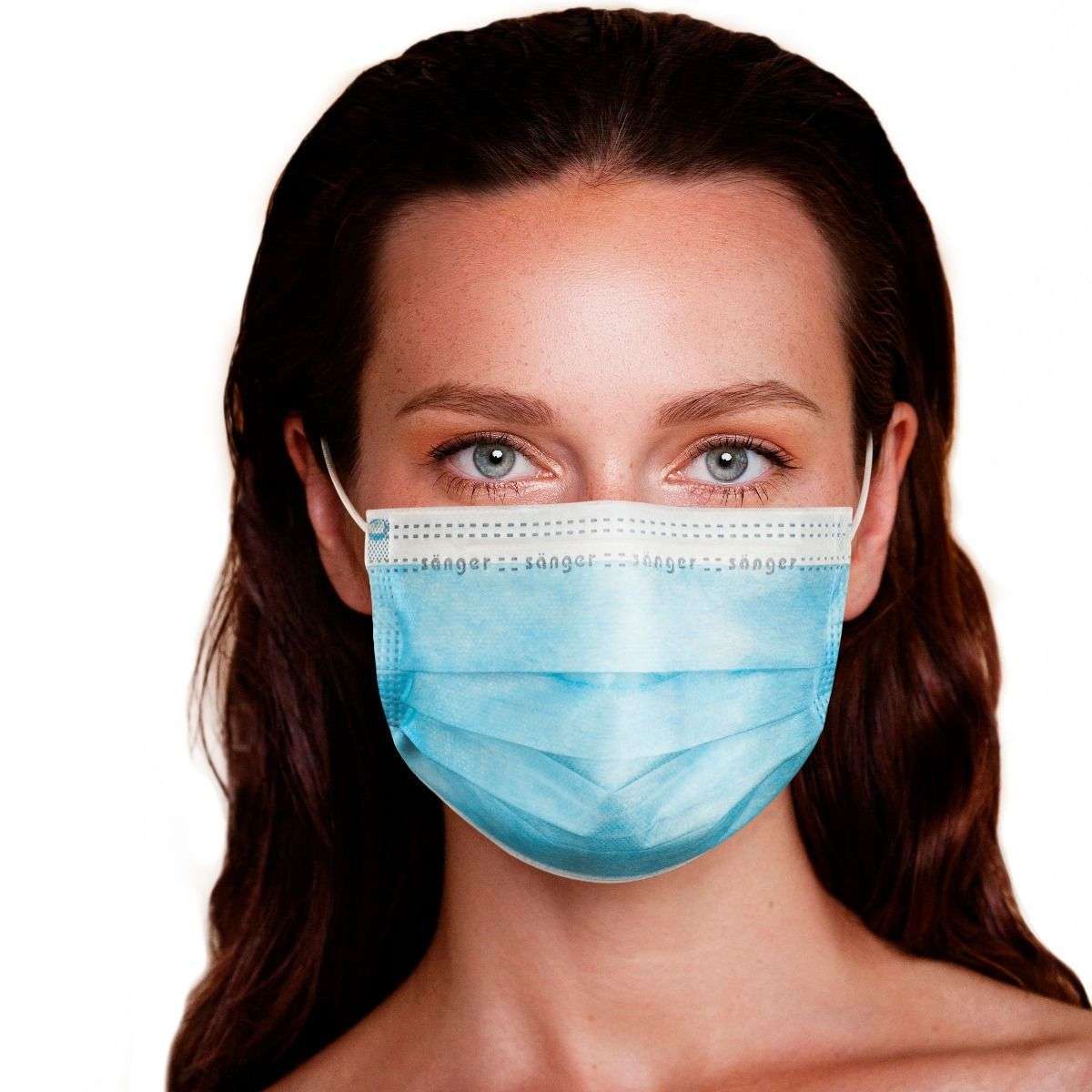 3-lagiger Mund- und Nasenschutz aus hochwertigem Vliesstoff mit einer Filterleistung > 99% in der Farbe blau.